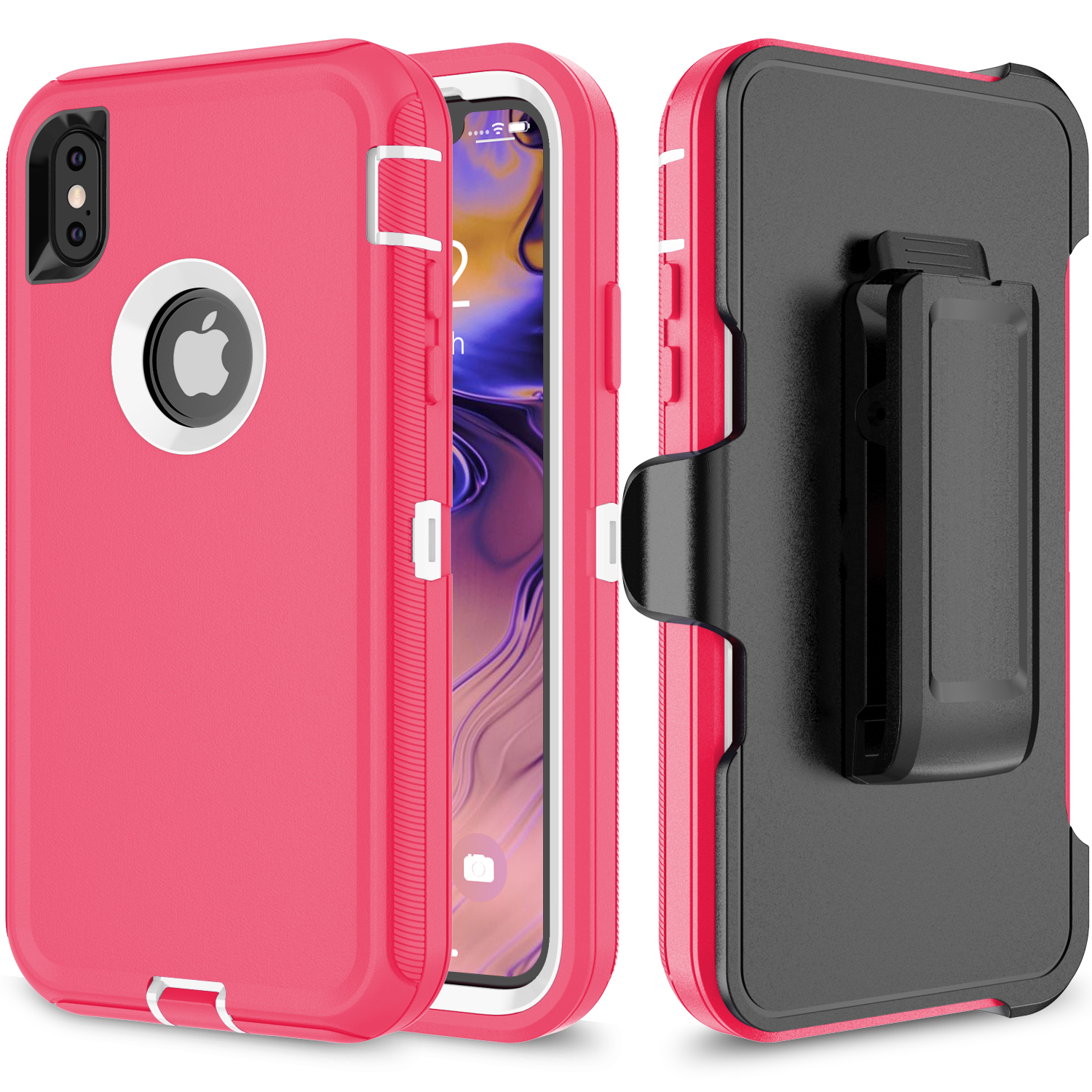 Shockproof Defender Case with Holster for IPhone X/Xs -Pink
