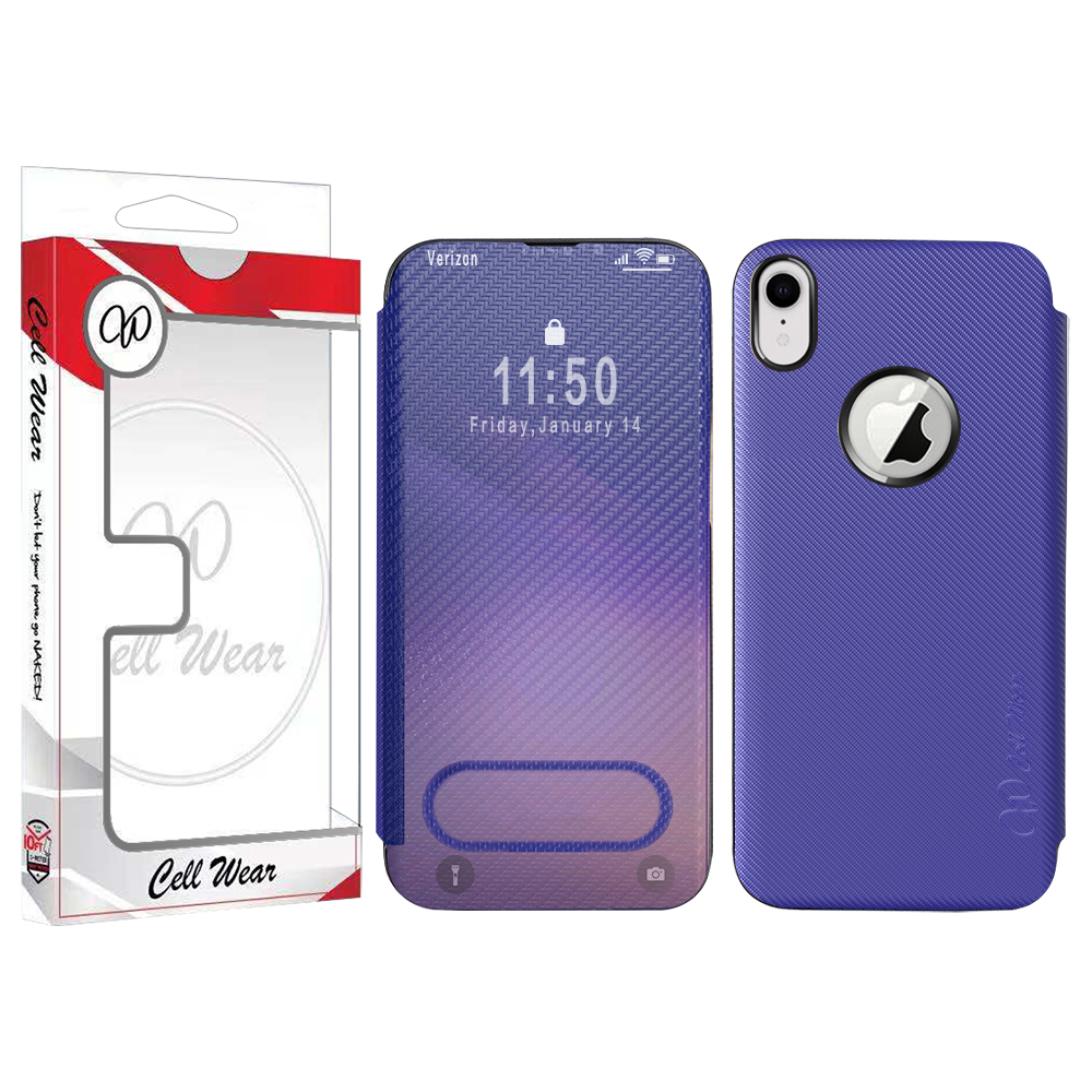 Carbon Fiber Touch Enabled Portfolio Case-Blue-For iPhone XR