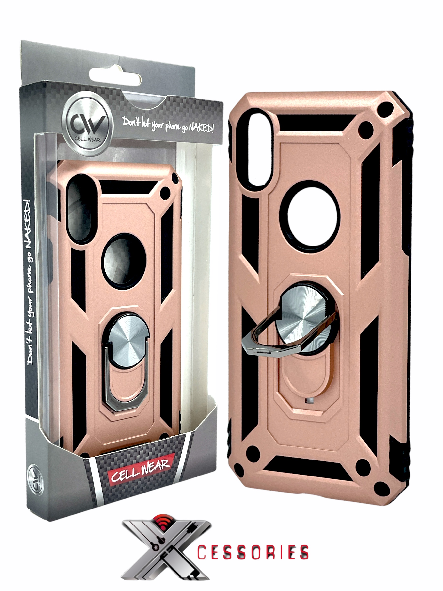 Shockproof Magentic Ring Stand Case for IPhone Xs Max - Black/Pink
