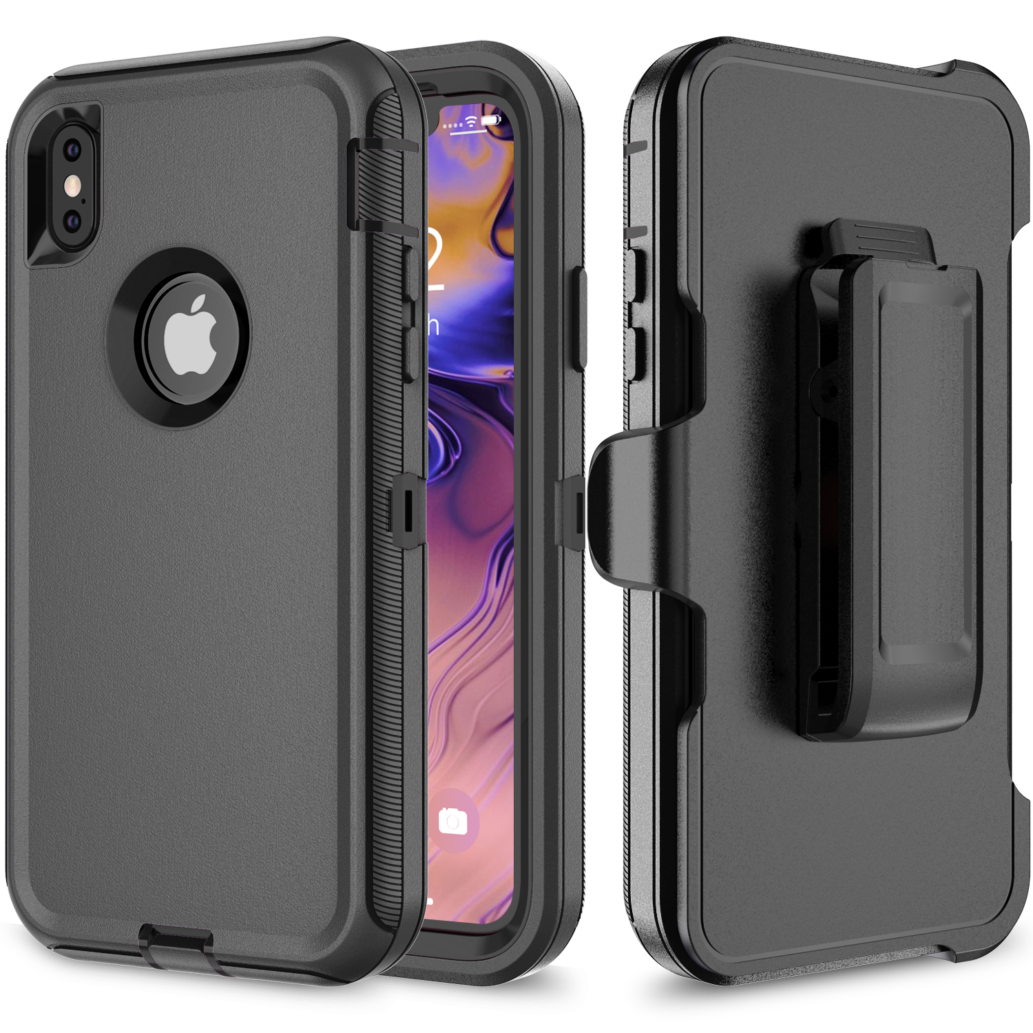 Shockproof Defender Case with Holster for IPhone Xs Max -Black