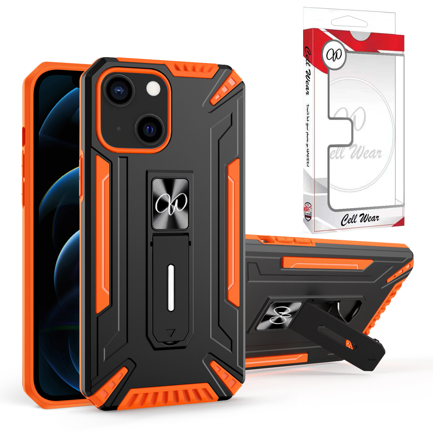 Built-In Kickstand Magnetic Mount Capability Heavy-Duty Mobile Phone CaseFor iPhone 13 Mini - Orange/Black