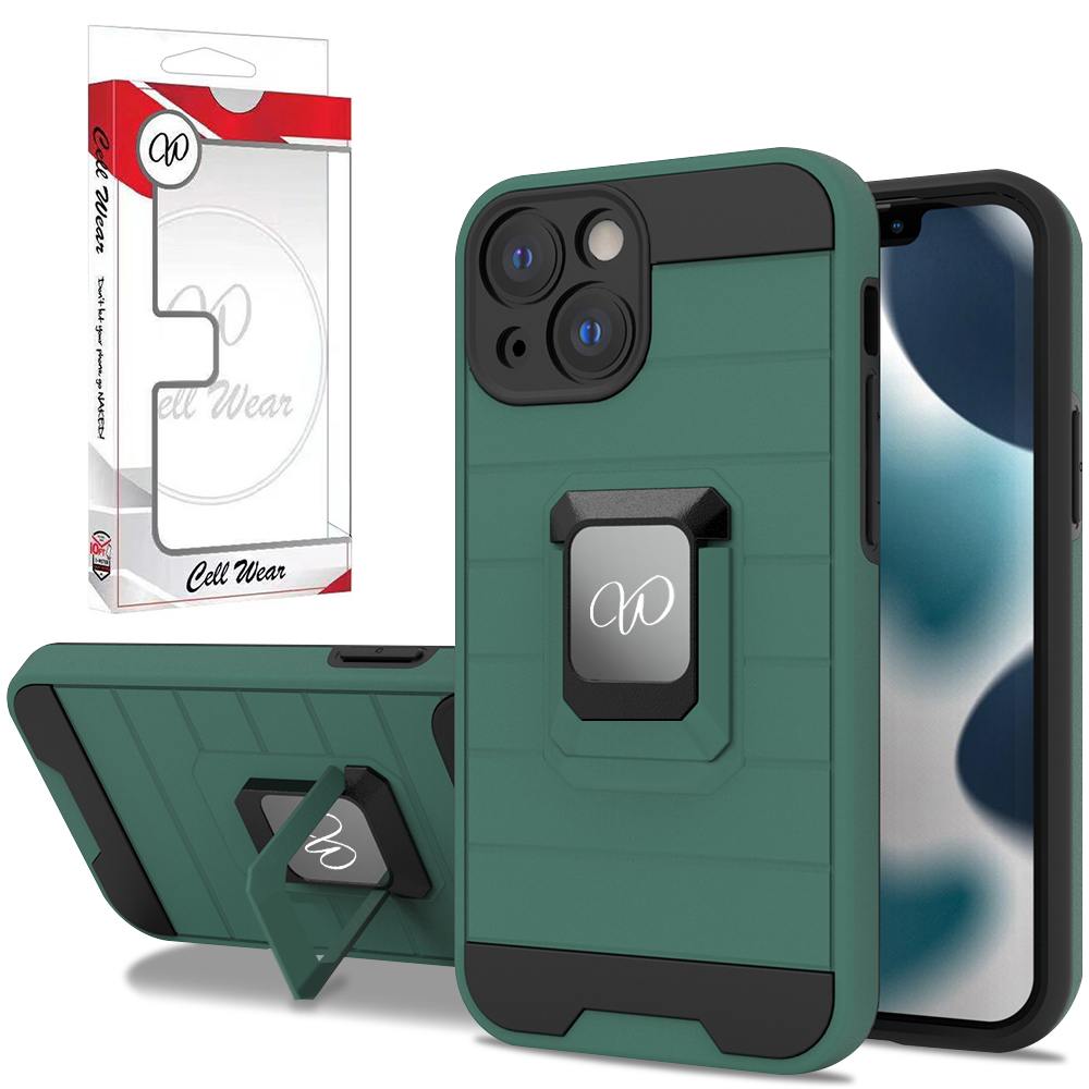 Shockproof Case Protective Magnetic Ring Kickstand Mobile Phone Case For iPhone 13 Mini - Midnight Green