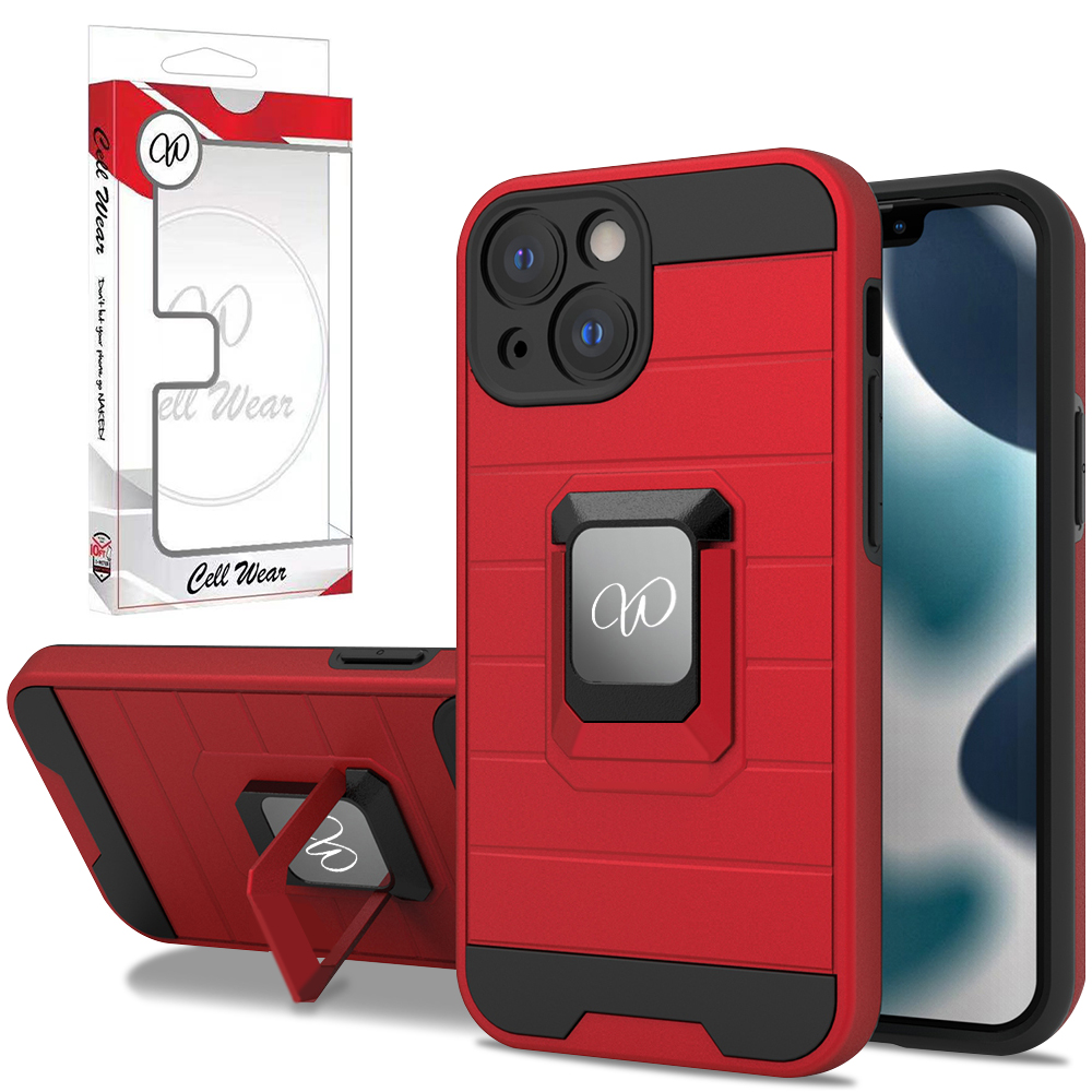 Shockproof Case Protective Magnetic Ring Kickstand Mobile Phone Case For iPhone 13 Mini - Red