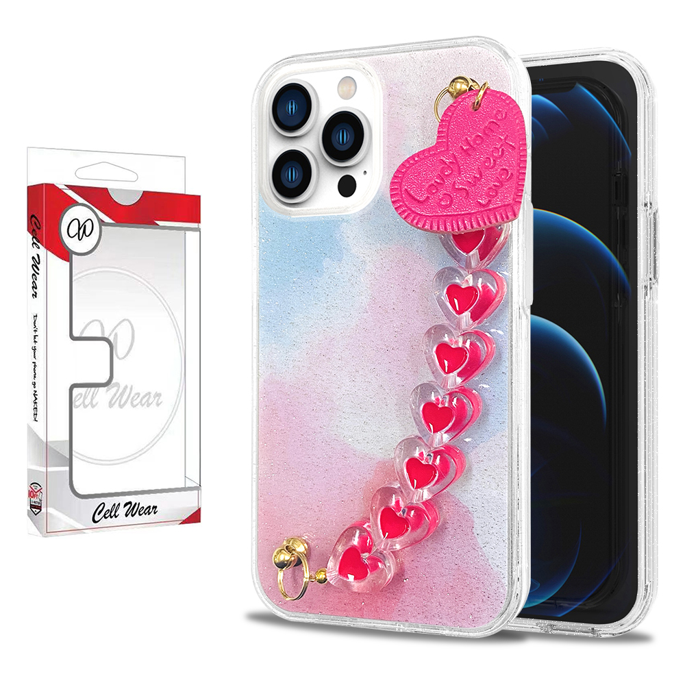Heart Chain Bracelet Case-Cotton Candy-For iPhone 13 Pro Max