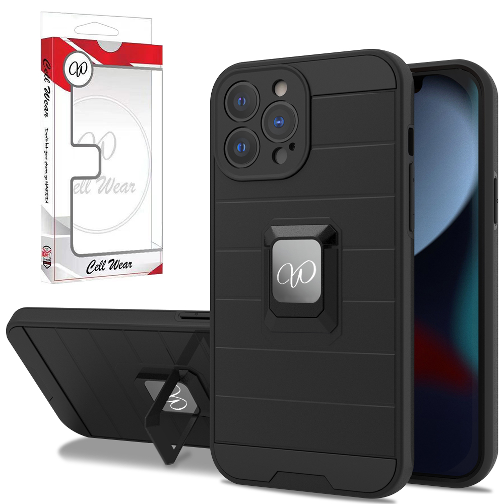 Shockproof Case Protective Magnetic Ring Kickstand Mobile Phone Case For iPhone 13 Pro Max - Black