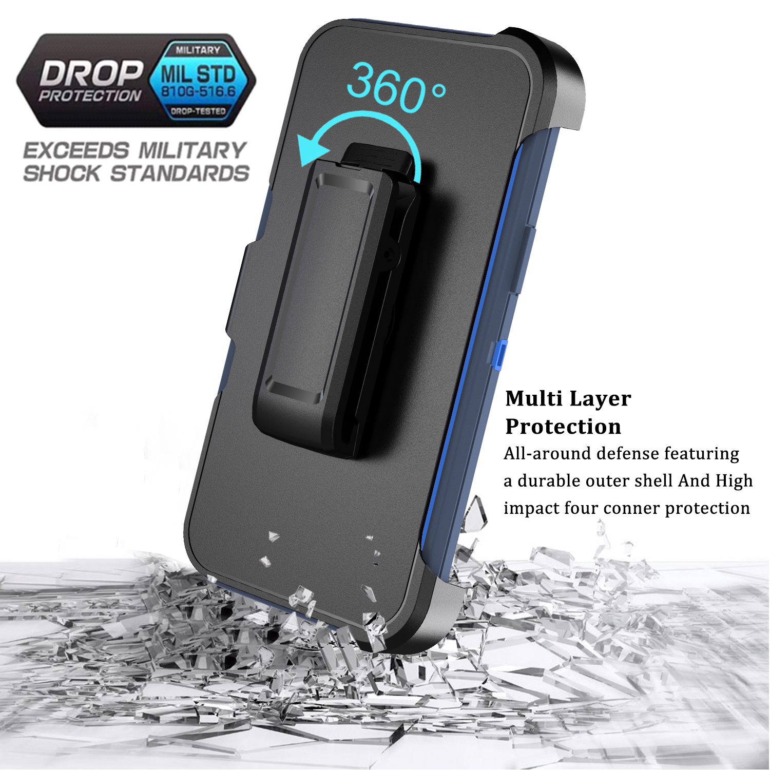 Shockproof Defender Case with Holster, Blue for iPhone 13 Pro Max