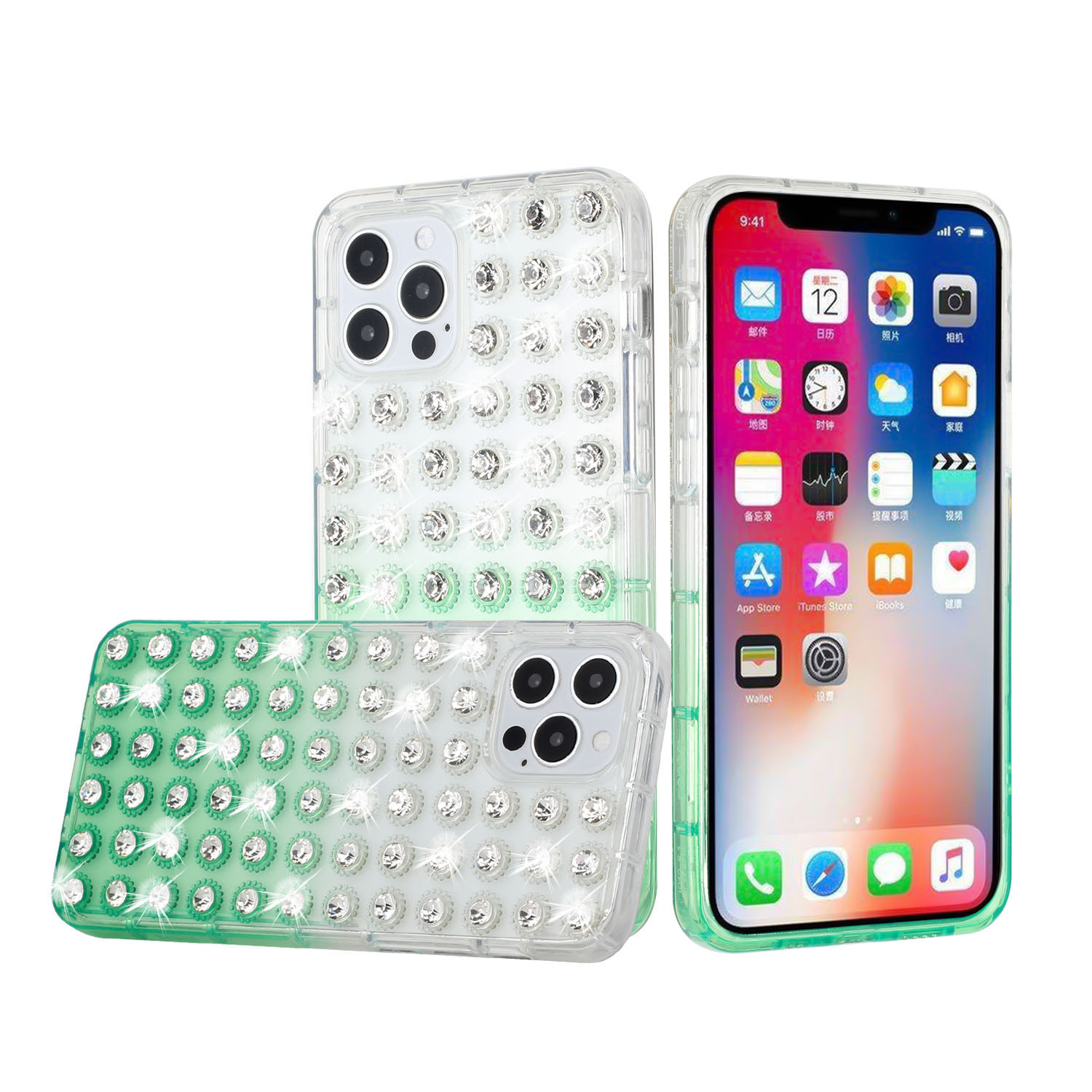 For iPhone 13 Pro All Over Diamond Luxury 2.0mm Thick TPU Cover Case - Clear/Green