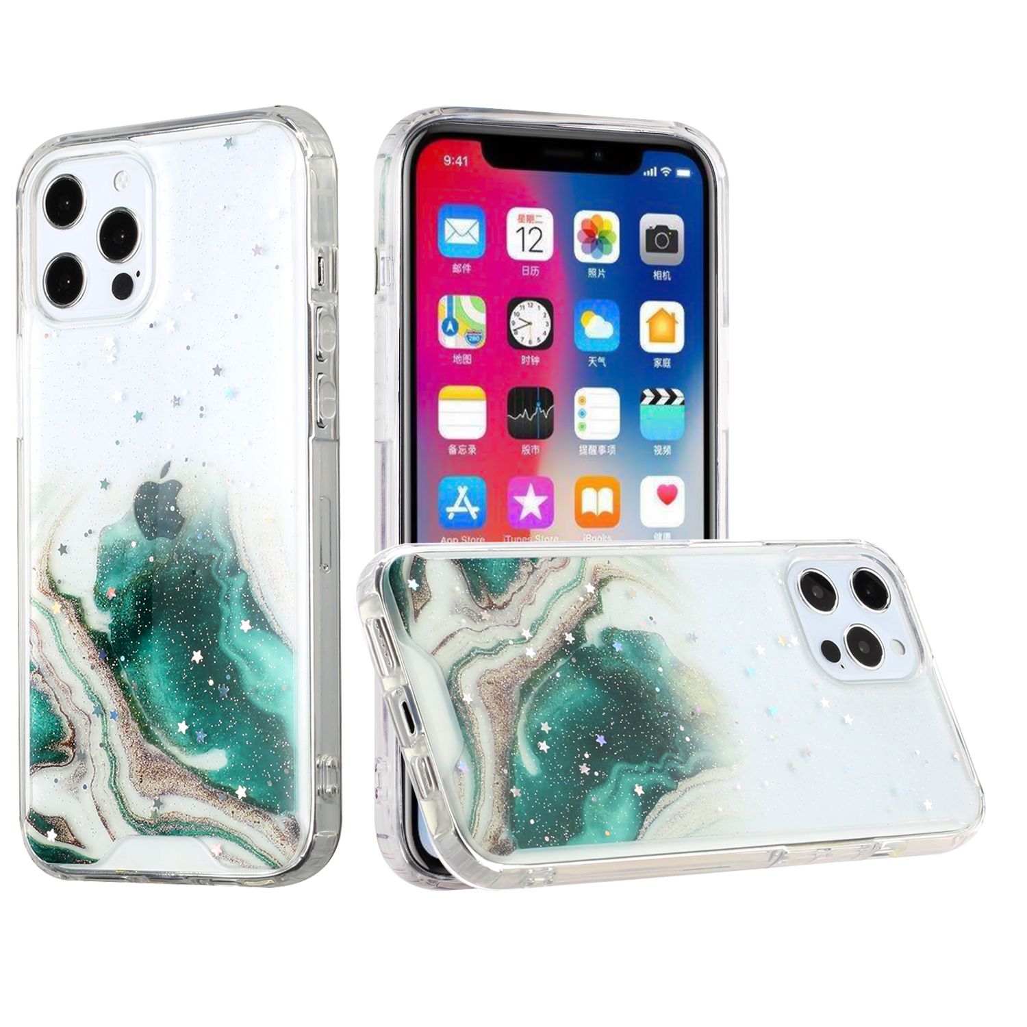 For iPhone 13 Pro Vogue Epoxy Glitter Hybrid Case Cover - Green Galaxy