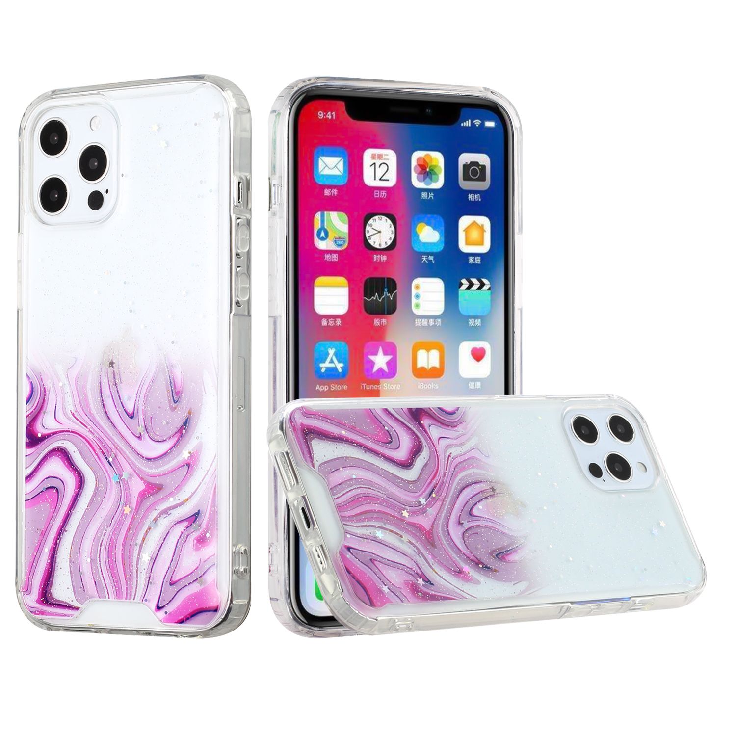 For iPhone 13 Pro Vogue Epoxy Glitter Hybrid Case Cover - Pink Galaxy