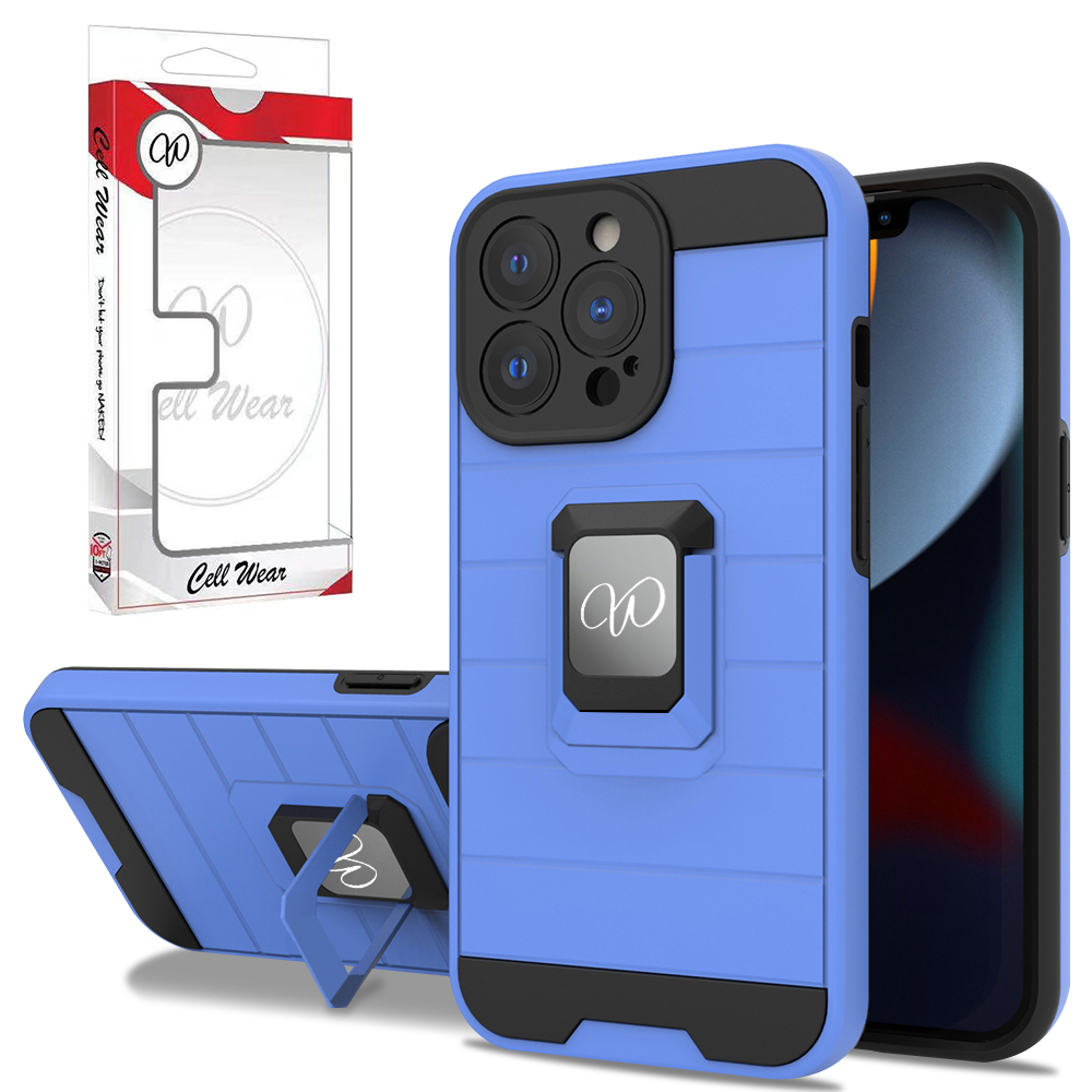 Shockproof Case Protective Magnetic Ring Kickstand Mobile Phone Case For iPhone 13 Pro - Blue
