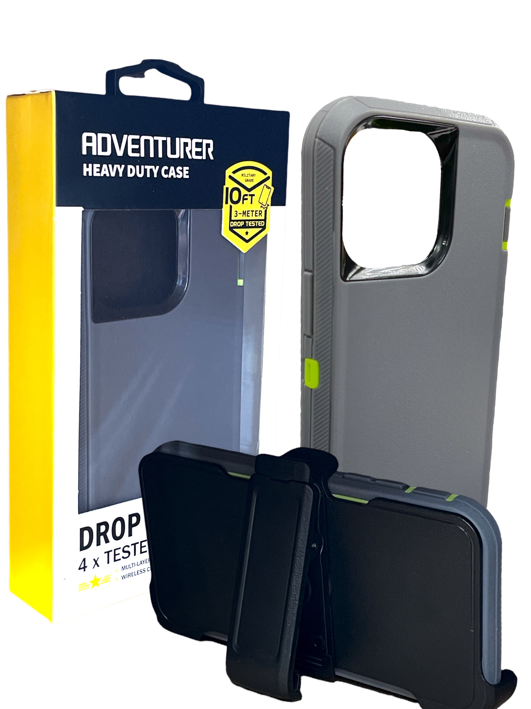 Shockproof Defender Case with Holster for IPhone 13 Pro -Grey/Green