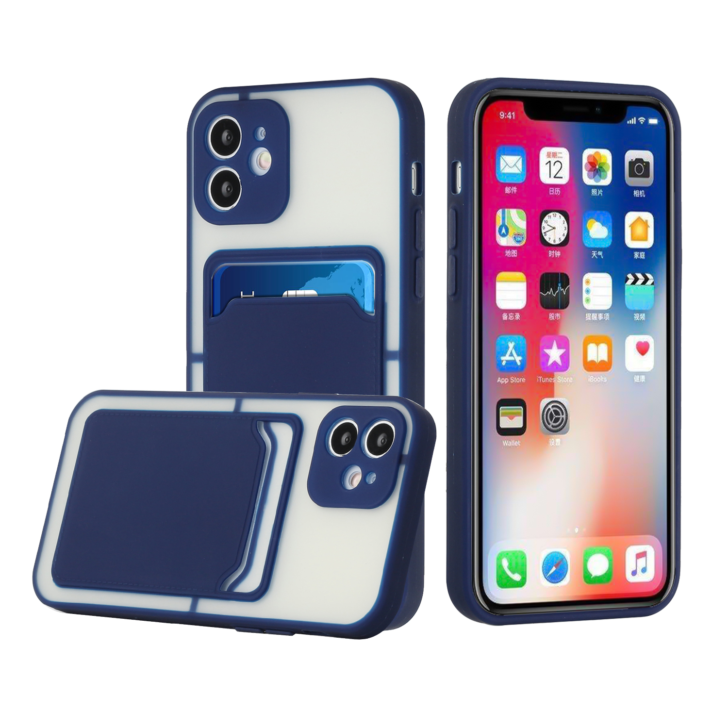 For iPhone 13 Pro Card Holder Frosted Shockproof Hybrid Case Cover - Blue