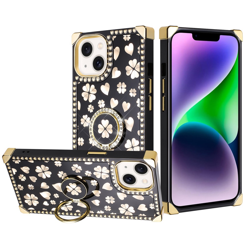 For iPhone 13/14 Passion Square Hearts Diamond Glitter Ornaments Engraving Case Cover - 19