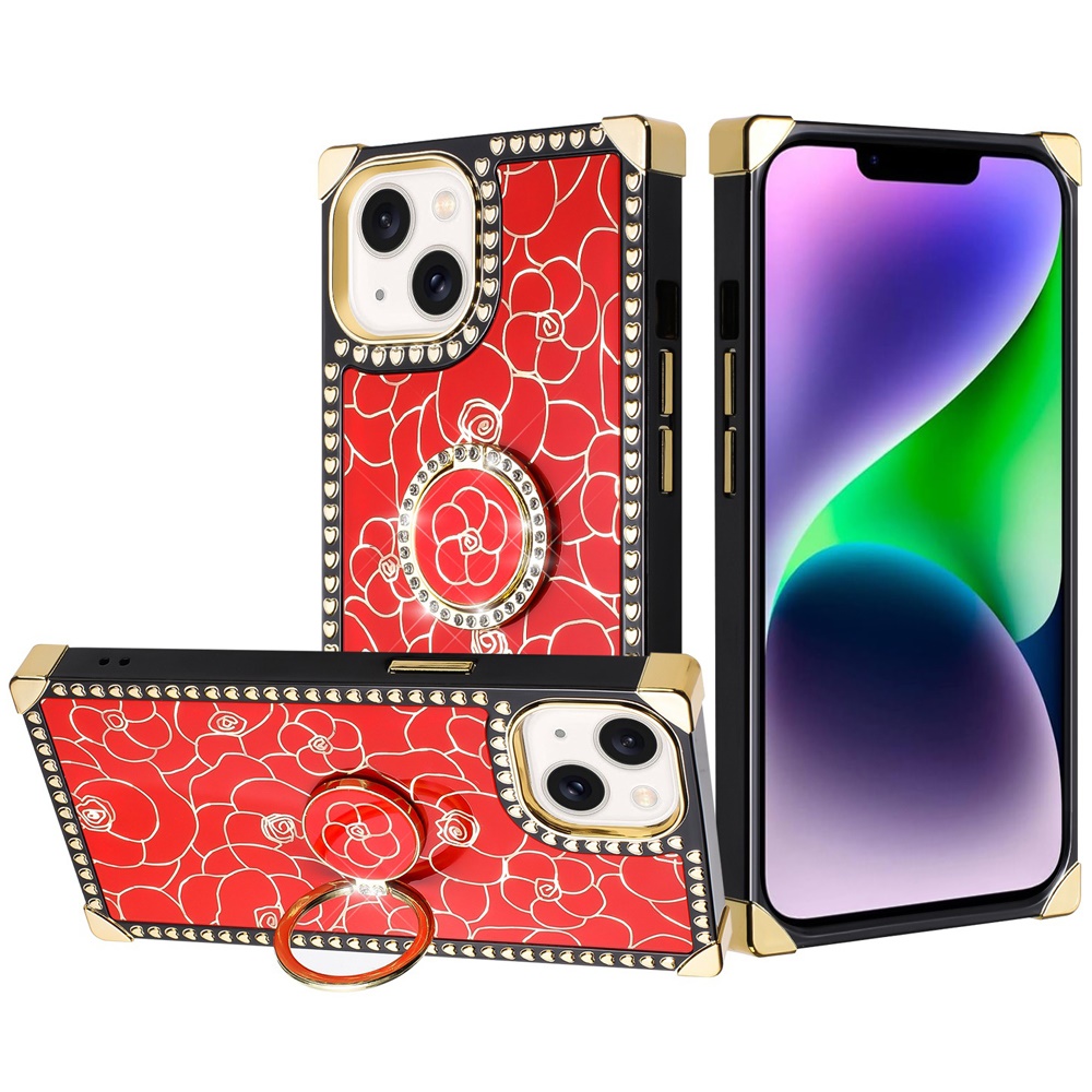 For iPhone 13/14 Passion Square Hearts Diamond Glitter Ornaments Engraving Case Cover - 28