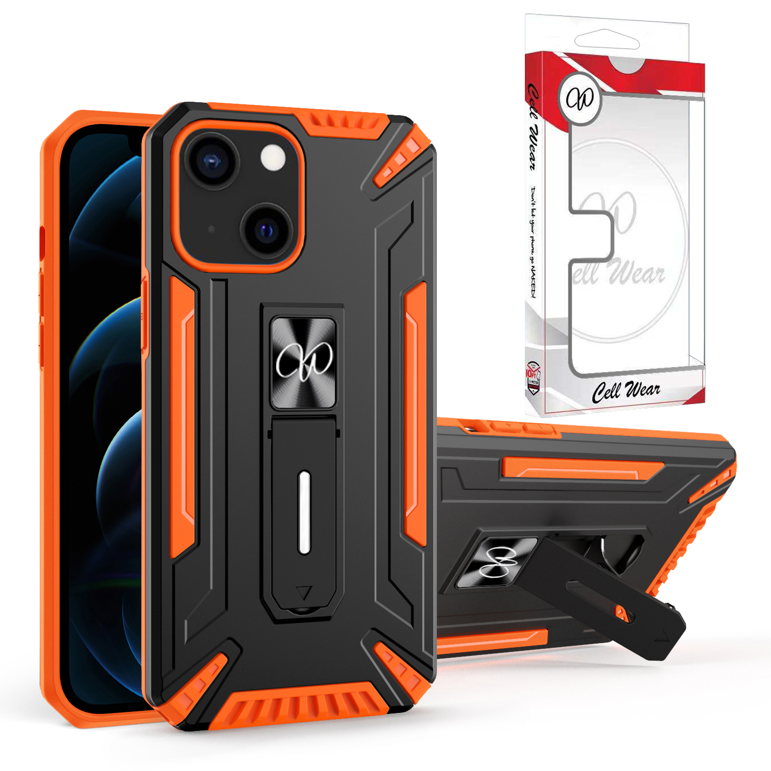 Kickstand Magnetic Mount Heavy-Duty Case For iPhone 13/14 - Orange/Black