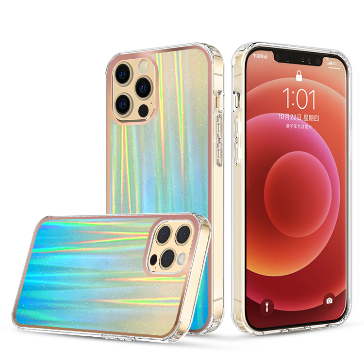For Apple iPhone 14 PRO 6.1" Two Tone Transparent Glitter Chrome Shockproof Case - Blue