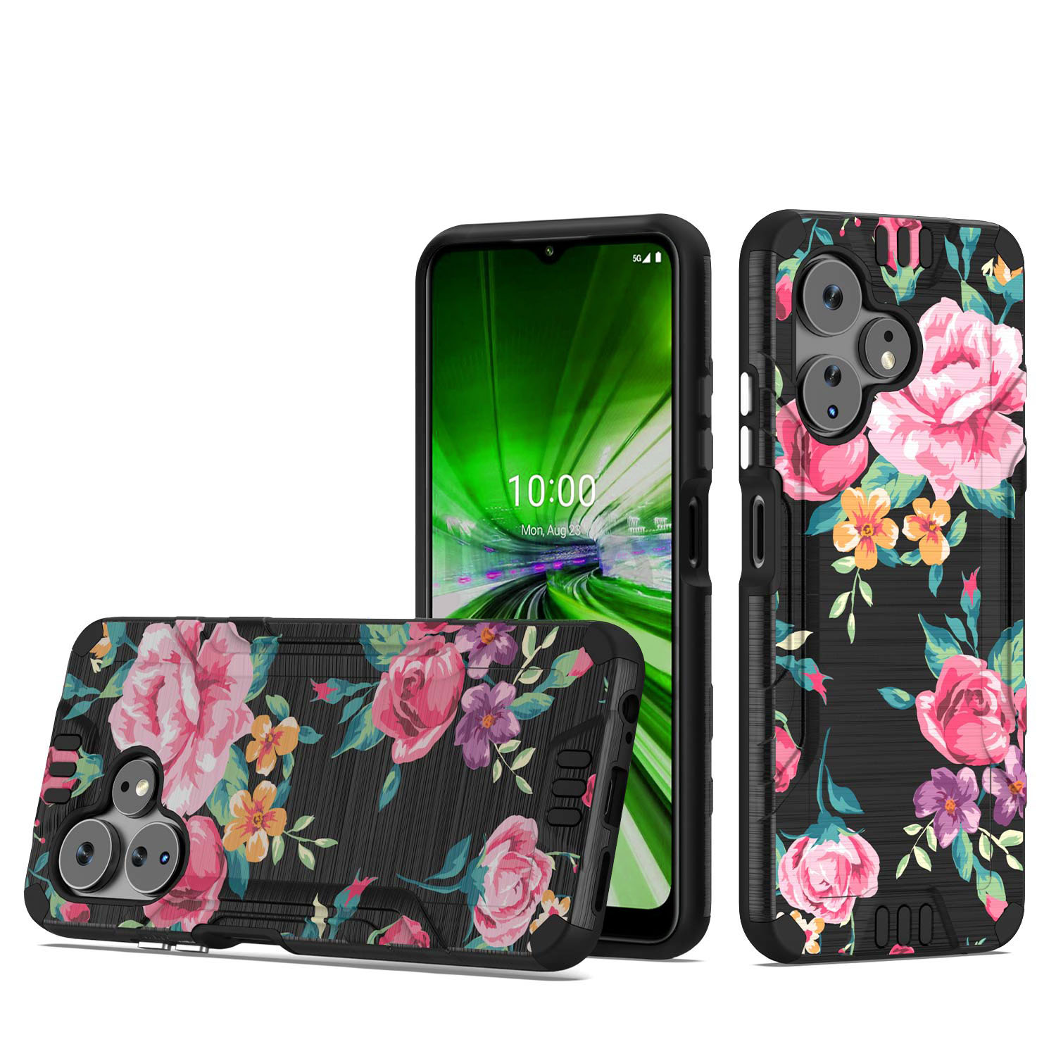 For Celero 3 Plus Strong Tough Metallic Design Hybrid - Tropical Romantic Colorful Roses Floral