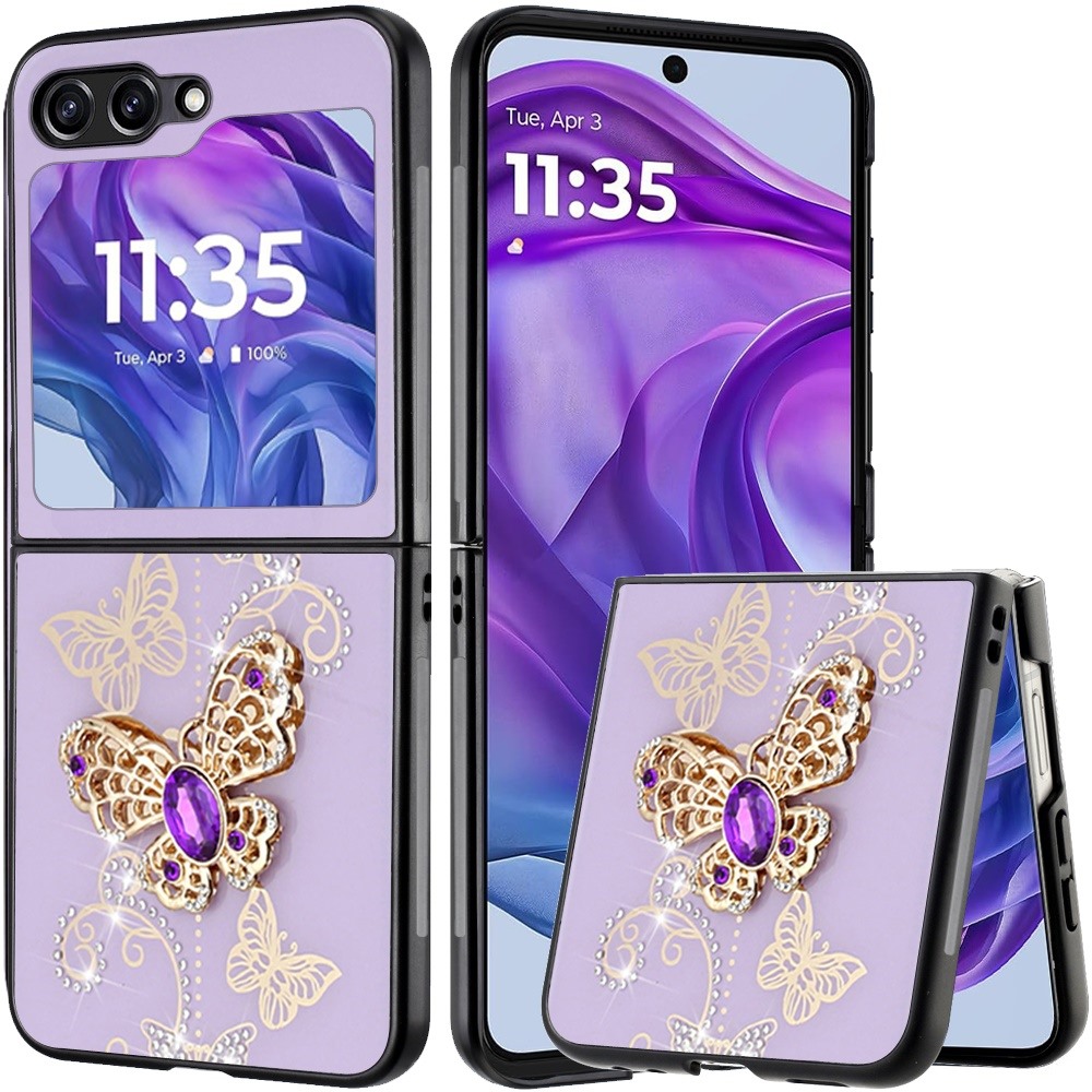 For Motorola Razr 2024 SPLENDID Diamond Glitter Ornaments Engraving Case Cover - Garden Butterflies Purple