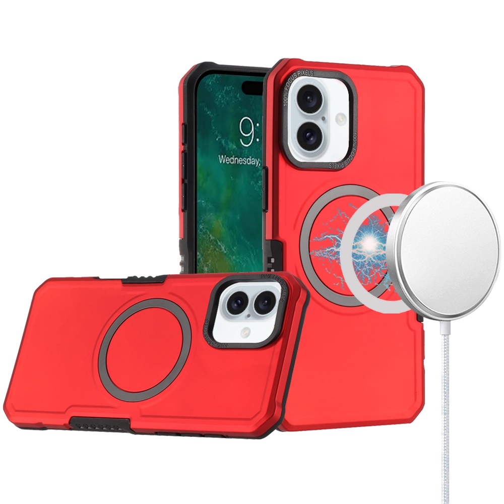 For iPhone 16 6.1 inch Grip [Magneti Circle] Metal Shockproof Hybrid - Red