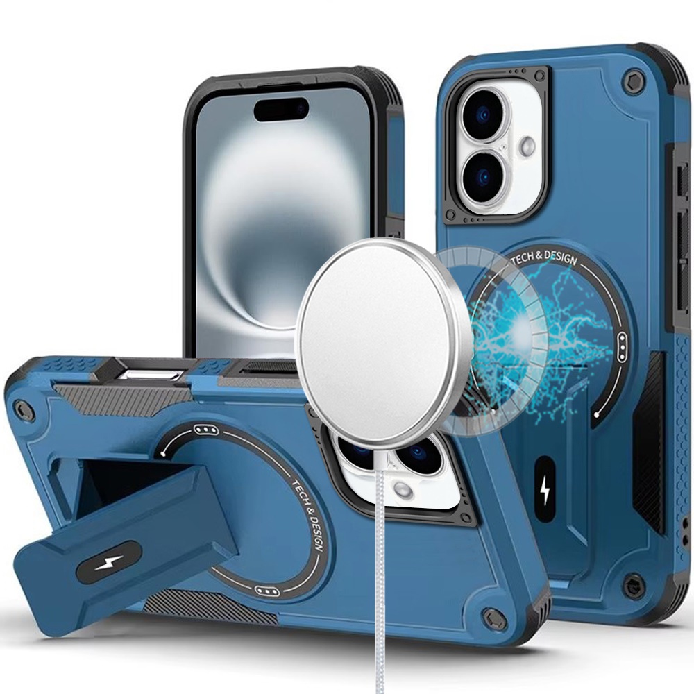 For iPhone 16 Plus 6.7 inch Sturdy Bracket Kickstand Magnetic Hybrid - Blue