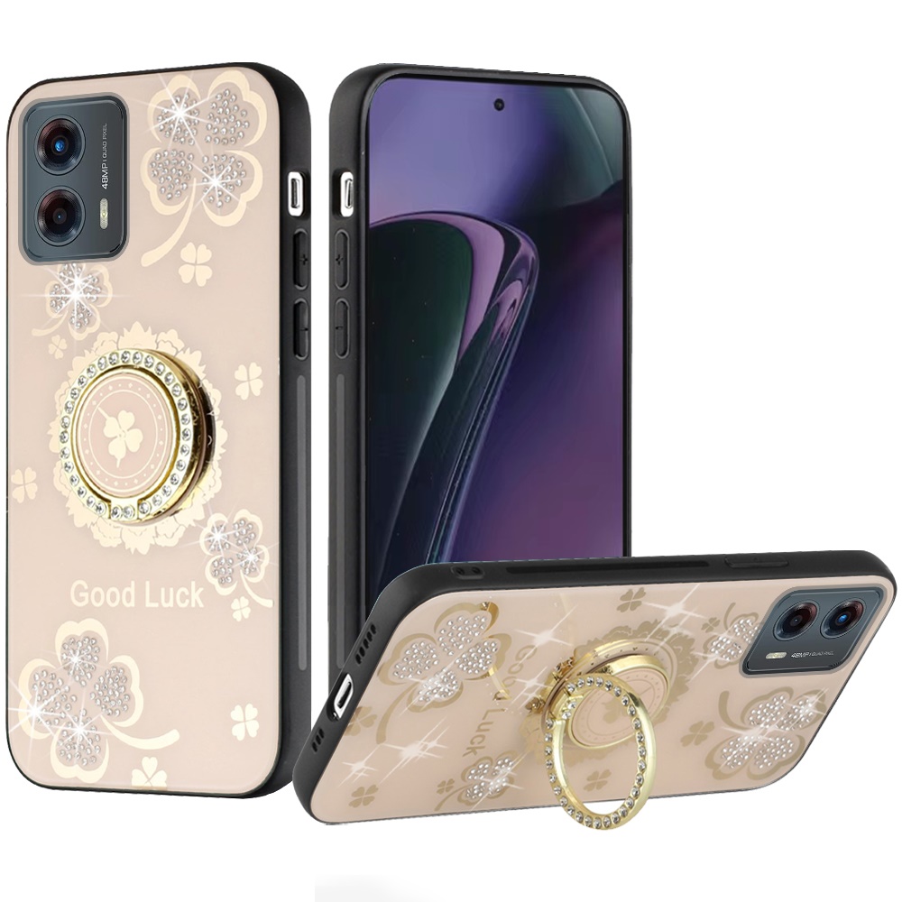 For Motorola Moto G Stylus 5G 2024 SPLENDID Diamond Glitter Ornaments Engraving Case Cover - Good Luck Floral Gold