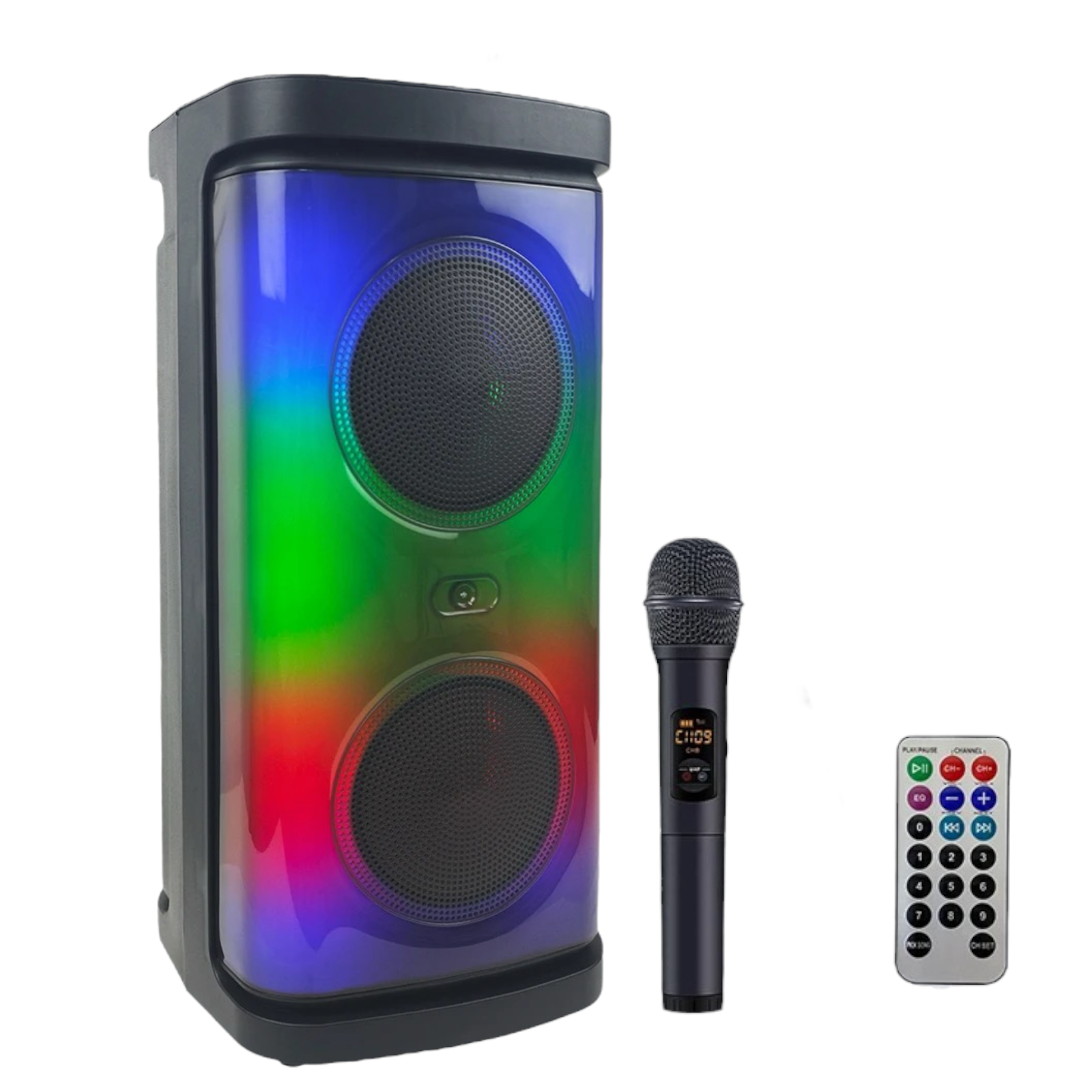 2x4" 3800W Portable LED Kareyoke Speaker with Wireless Microphone