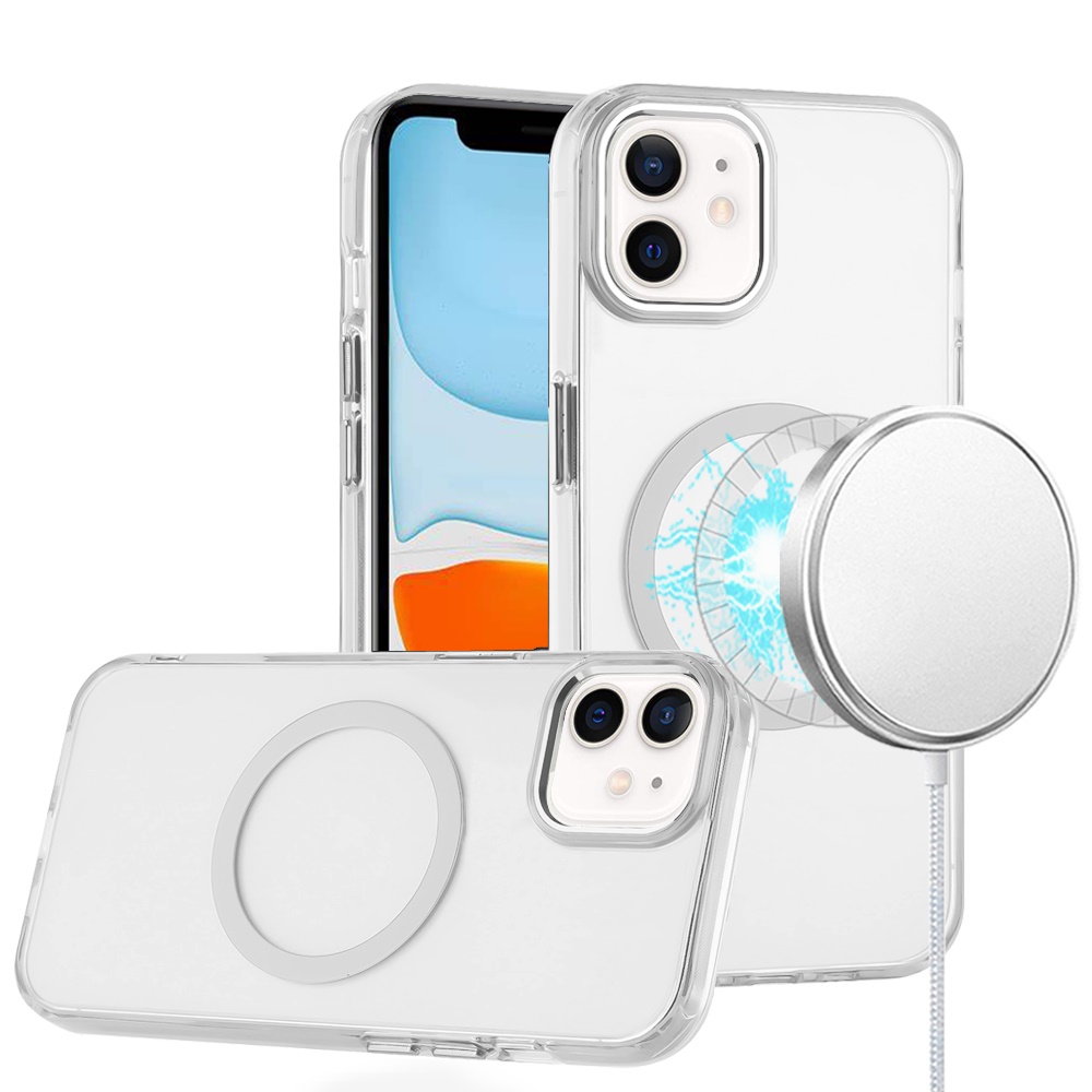 For iPhone 11 (XI6.1) Magnetic Circle Ring Transparent Premium Acrylic with Metal Buttons & Camera Raised Lip - Clear