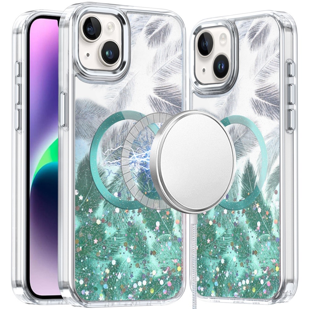 For iPhone 13 6.1 Epoxy Glitter Shimmer [Magnetic Circle] Hybrid Case - Light Green