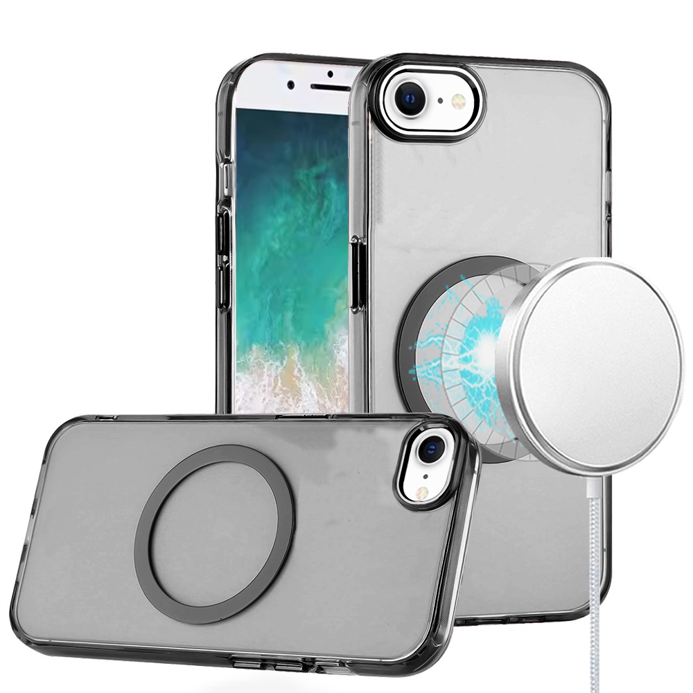 For iPhone SE4 Magnetic Circle Ring Transparent Premium Acrylic with Metal Buttons & Camera Raised Lip - Black