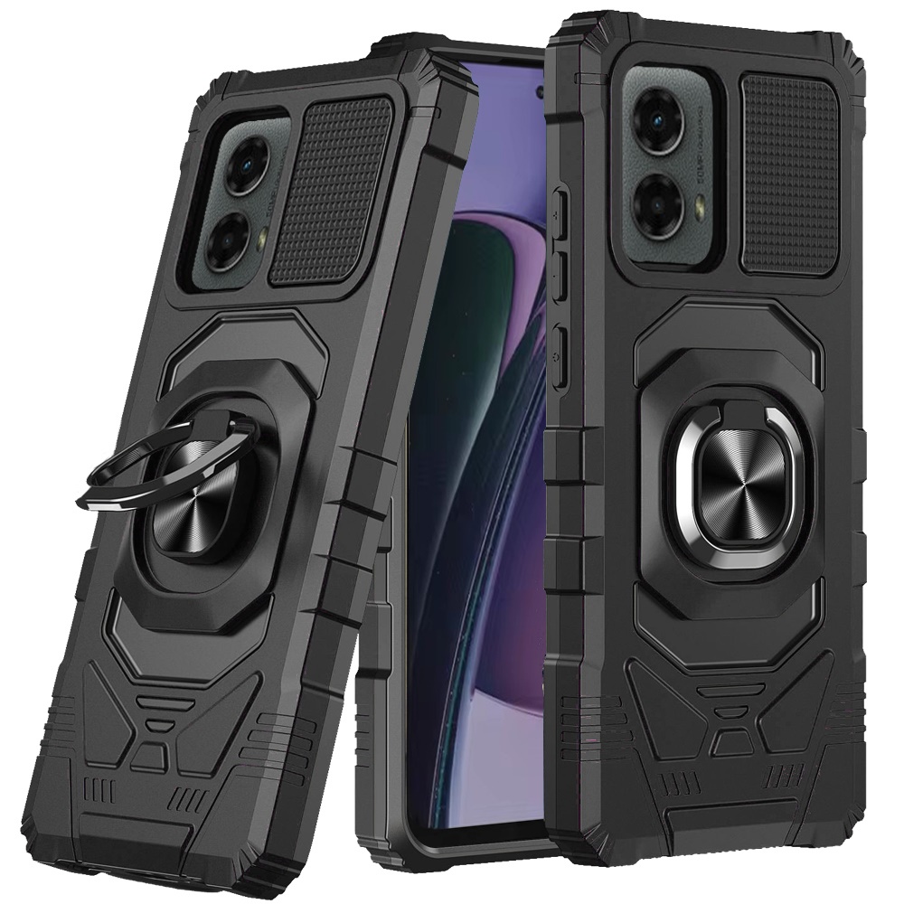 For Motorola Moto G Stylus 5G 2024 Robotic Hybrid with Magnetic Ring Stand Case Cover - Black