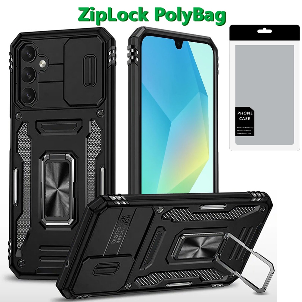 [PolyBag] For Samsung A16 5G Utter Tough Metal Ring Movable Camera Window Hybrid Case Cover - Black