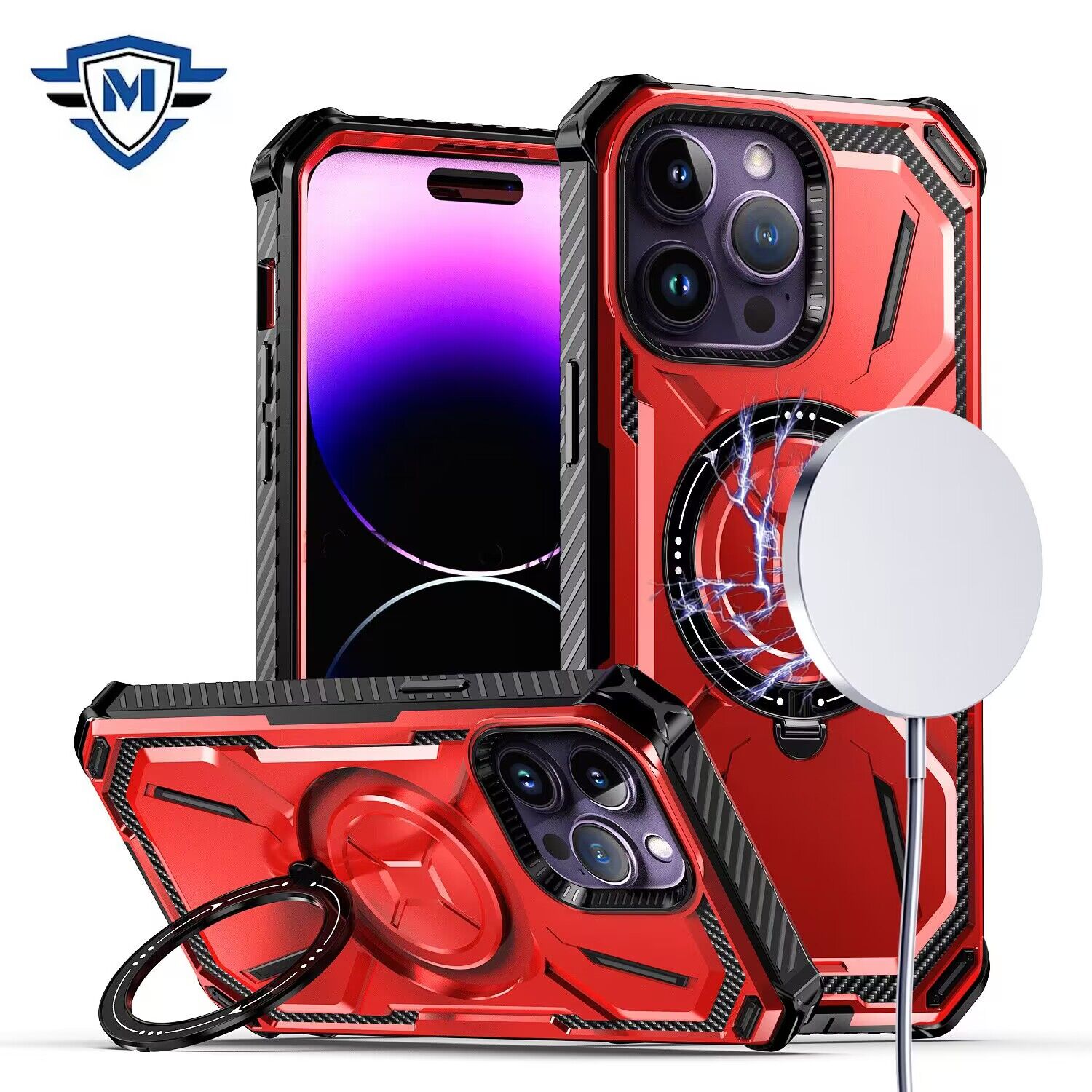 For iPhone 15 Plus METKASE Magnetic Ring Stand Premium Ultra Rugged ShockProof Hybrid in Slide-Out Package - Red