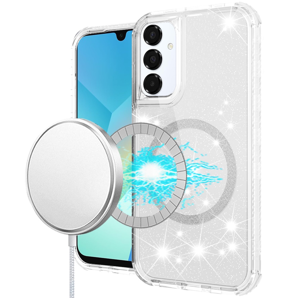 For Samsung A16 5G Magnetic Ring Glitter 3in1 Hybrid Case Cover - Clear