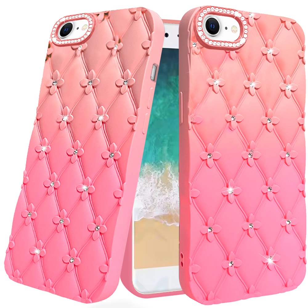 For iPhone 16E / SE4 Floral Joy Glitter Shimmer Leather Feel Thick TPU Case - Orange/Pink