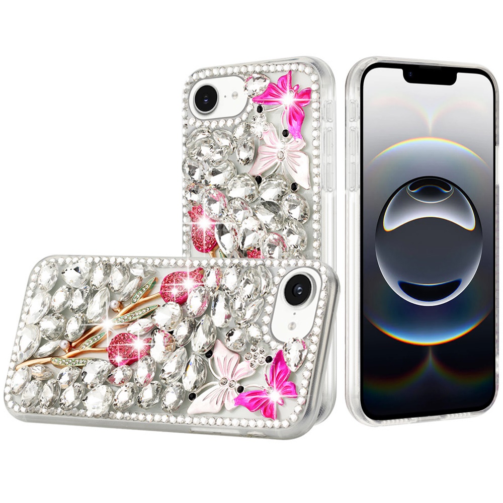 For iPhone 16E / SE4 Full Diamond with Ornaments Case Cover - Crystal Exquisite Garden