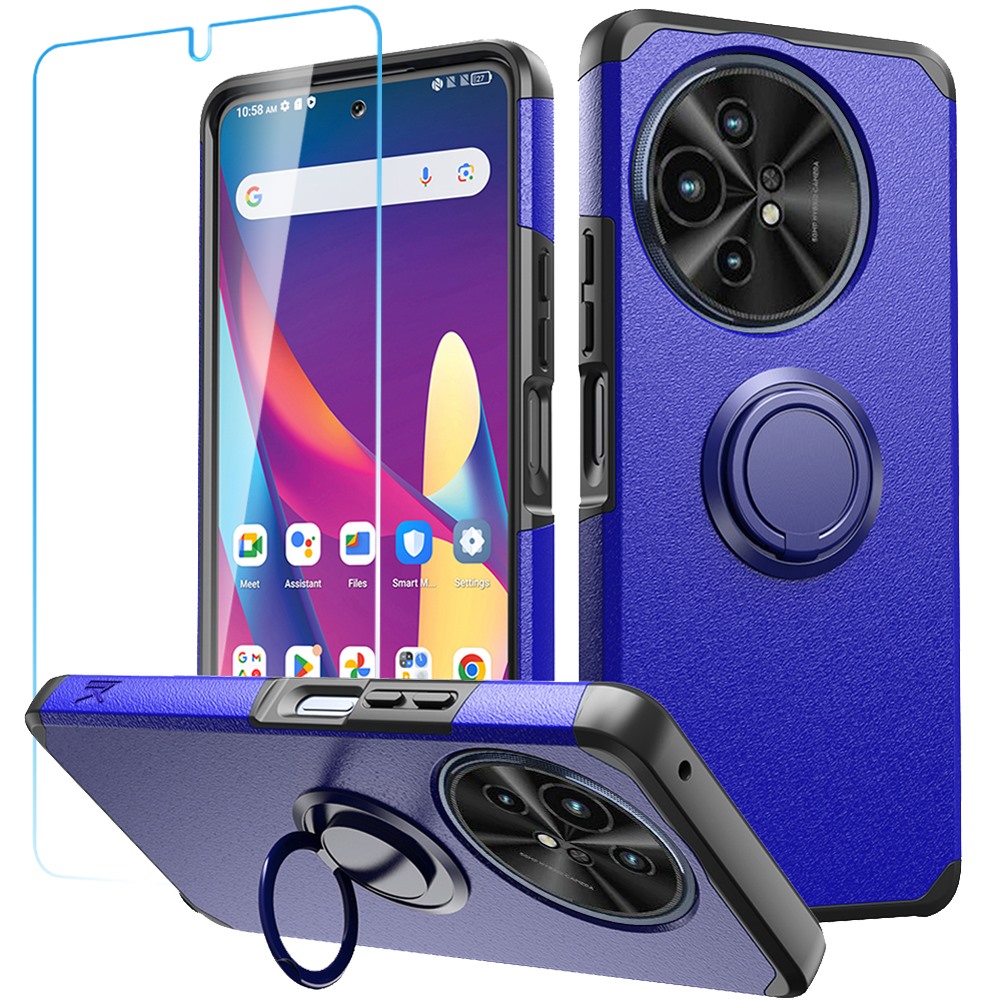 For TCL 50 XL 5G Tough Hybrid With Ring Stand + Tempered Glass - Classic Blue