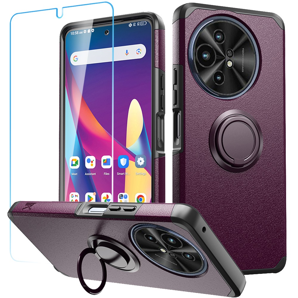 For TCL 50 XL 5G Tough Hybrid With Ring Stand + Tempered Glass - Dark Purple