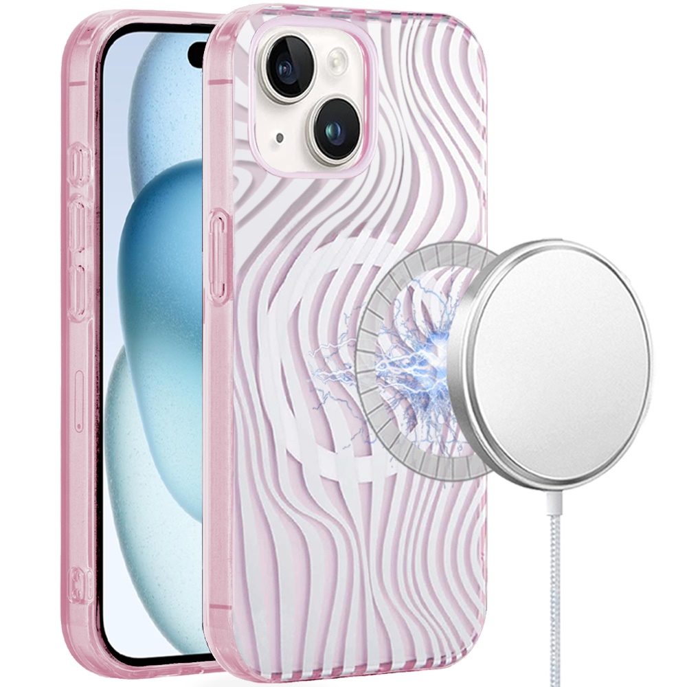 For iPhone 15 [Magnetic Circle] Double Layer Design IMD TPU Case - Wave Pin