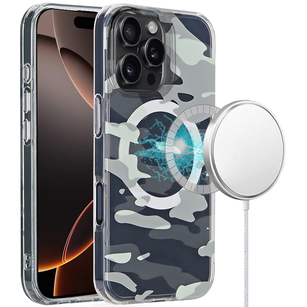For iPhone 16 Pro 6.3 inch Magnetic Double Layer IMD Design Case - Green Camo