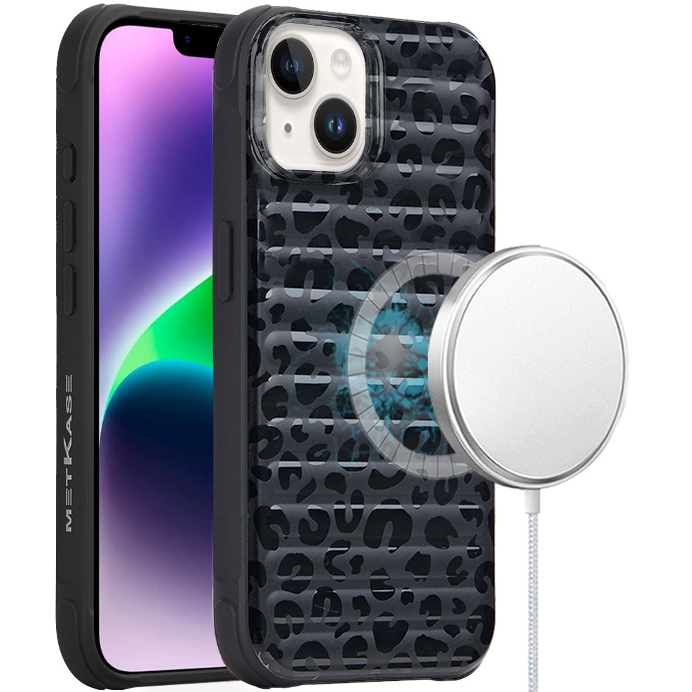 For iPhone 13/14 Magnetic Chrome Case - Black Leopard