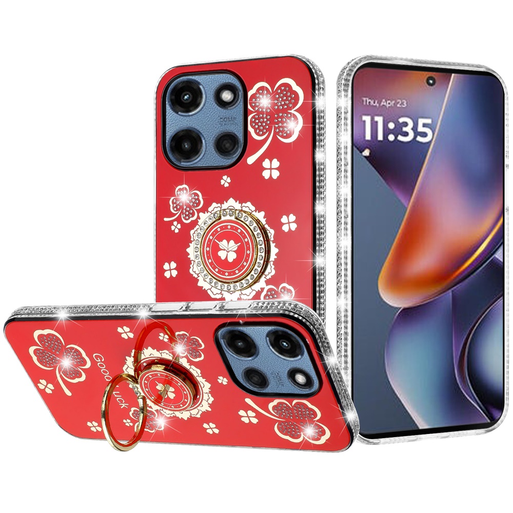 For Motorola Moto G 5G 2025 Splendid Glitter with Diamonds All Around Edges Ring Stand Case Cover - Red
