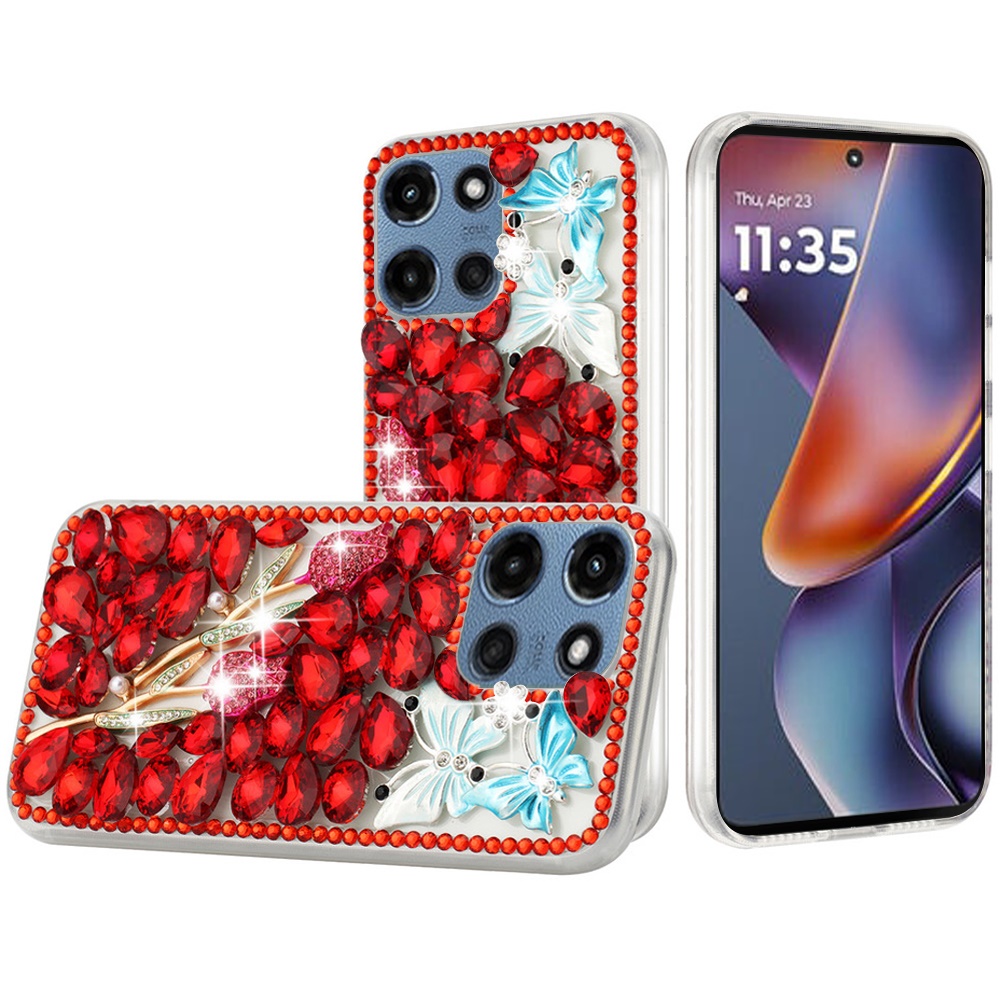 For Motorola Moto G 5G 2025 Full Diamond with Ornaments Case Cover - Red Exquisite Garden