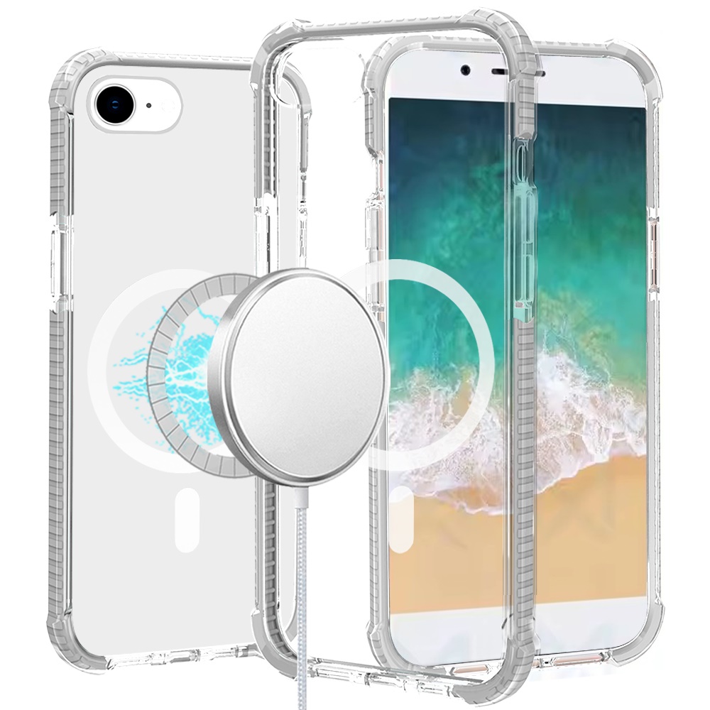 For iPhone 16E / SE4 Acrylic [Magnetic Circle] Tough 2.5mm Transparent ShockProof Hybrid - White