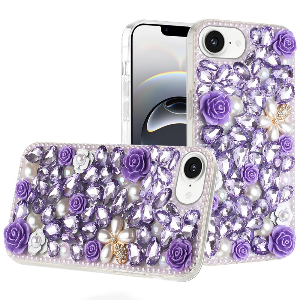 For iPhone 16E / SE4 Rose Flower Full Diamond Bling Stones - Purple