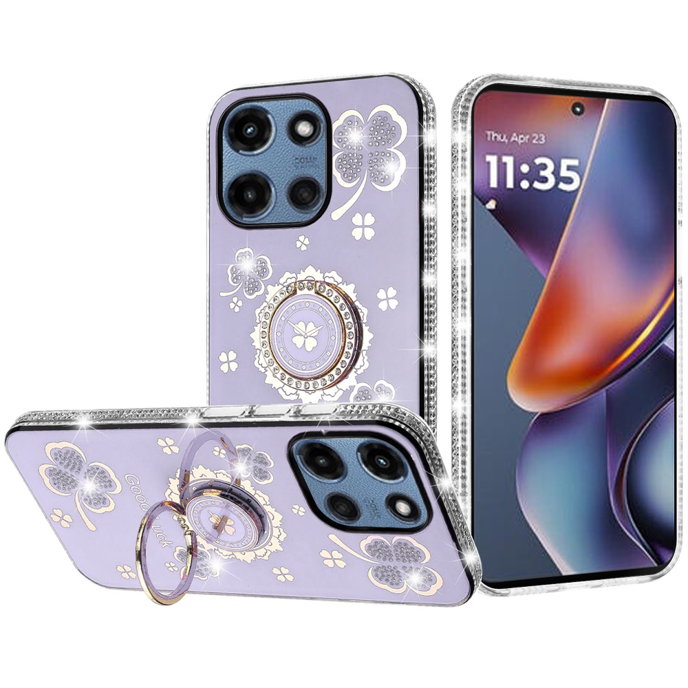 For Motorola Moto G 5G 2025 Splendid Glitter with Diamonds All Around Edges Ring Stand Case Cover - Purple