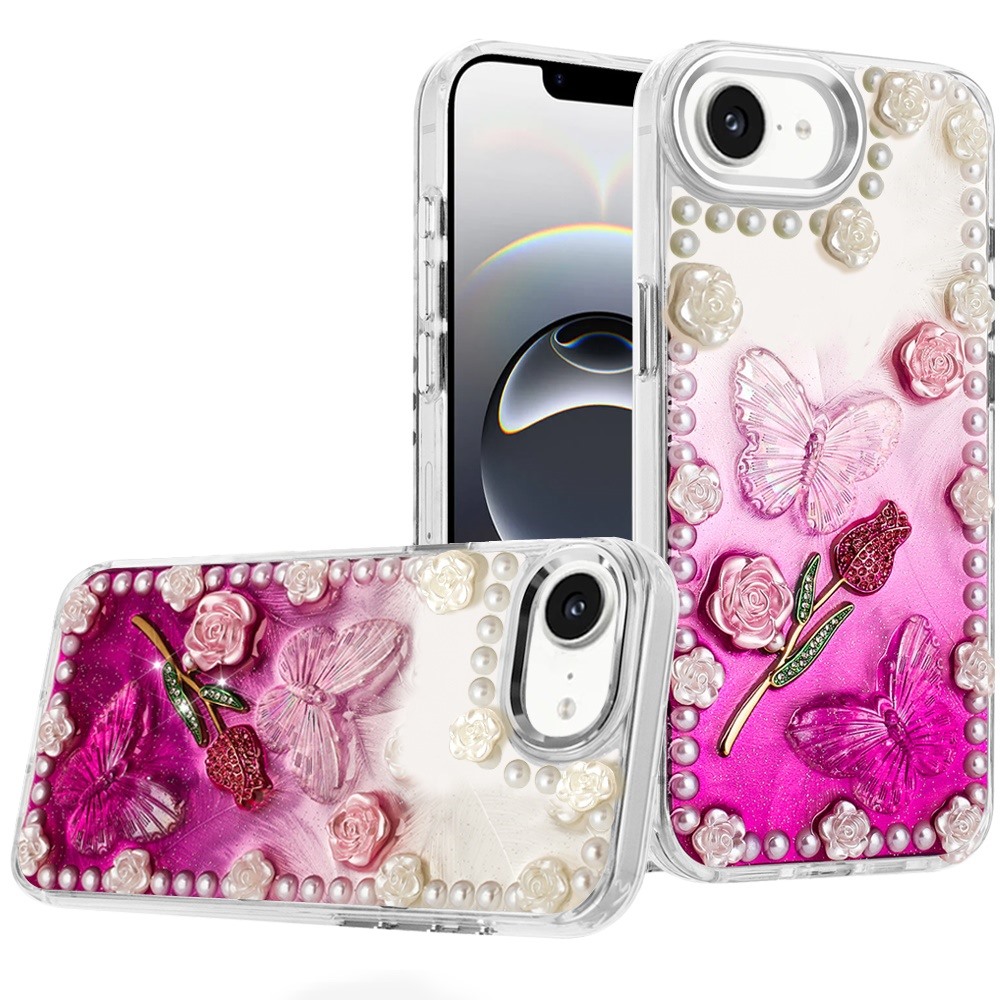For iPhone 16E (E edition) / SE4 (2025) Pearls Epoxy Glitter Ornaments Design Chrome Edged Case - 7