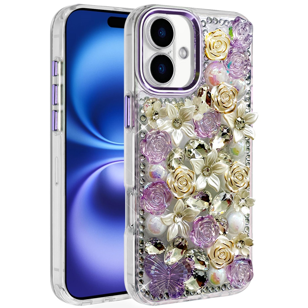 For iPhone 17 Muti-Color Rose Bling Stones Ornaments Case - Purple