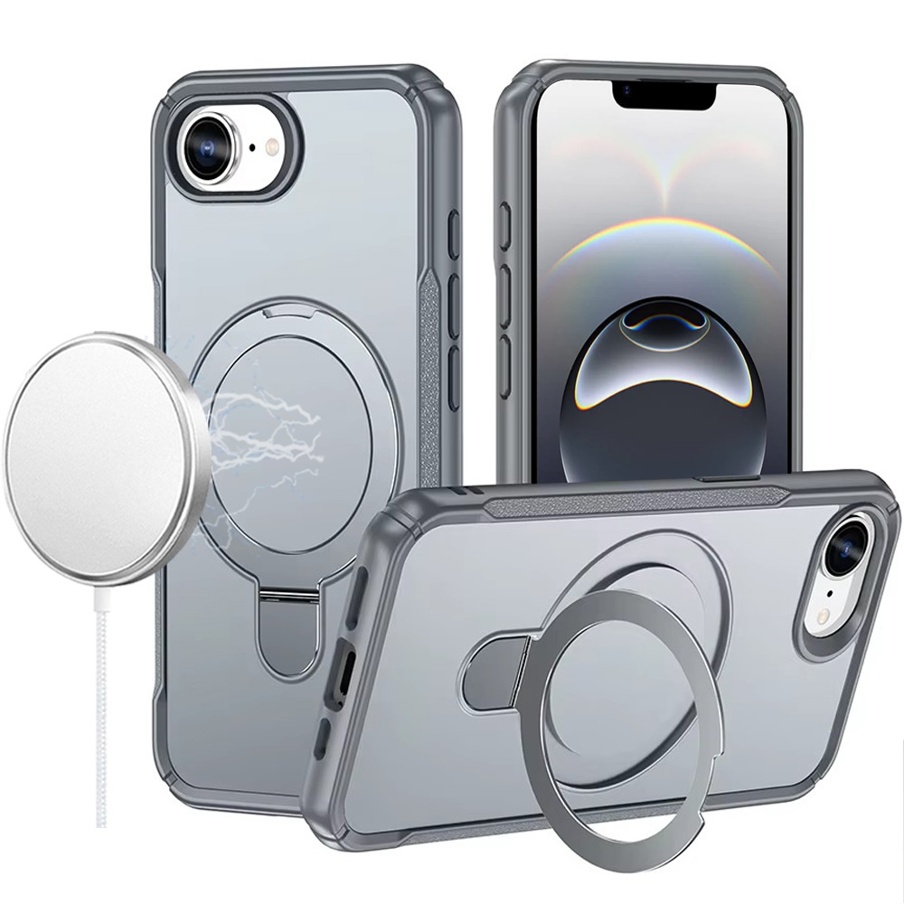 For iPhone 16E (E edition) / SE4 (2025) Matte Finish Simplified Magnetic Ring With Stand Hybrid Case - Gray