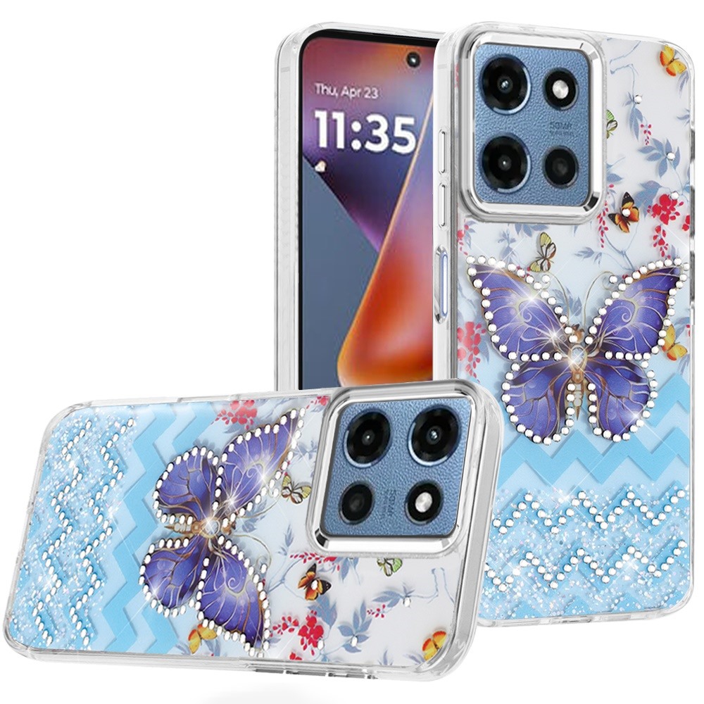 For Motorola Moto G 5G 2025 Resin Epoxy Design Diamond Metal Edged Hybrid Case - D