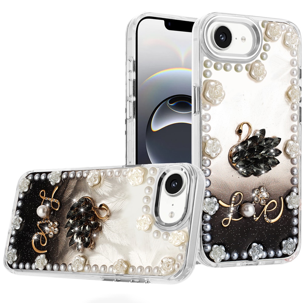 For iPhone 16E (E edition) / SE4 (2025) Pearls Epoxy Glitter Ornaments Design Chrome Edged Case - 2